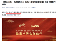 核心逻辑: 1、卡游成为《2026年春节联欢晚会》独家卡牌合作伙伴。这是央视春晚41年历史上首次设立该合作身份,标志着国家顶级文化盛事与新时代潮流文创的破圈融合。 2、春晚的全球性曝光将极大刺激“生肖卡牌”等文创产品需求,为卡游及其产业链带来直接业绩增量。 3、预期差巨大:从“潮玩厂商”到“文化使者”的价值重估。此次合作中,总台明确将其定位为“新质生产力在文创领域的生动实践者”与传统文化创新转化的“产业典范”。这标志着其商业模式获得了国家层面的文化价值肯定,有望驱动市场对其社会价值与长期成长性进