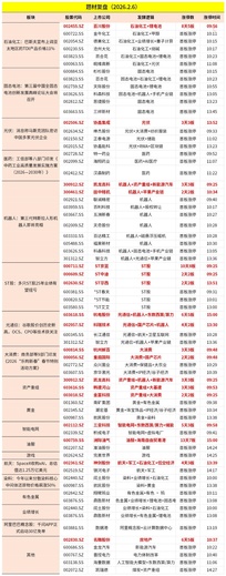 刚刚过去的一周,题材股整体操作难度很大! 除了周三指数大涨个股普涨,其它时间,量化将题材反噬演绎到了极致:前一天大涨或最热的板块,隔日往往低开,龙头都能摁跌停。 目前从盘面看,很多热点题材主要围绕春晚主题展开,比如AI应用(腾讯元宝、阿里千问近期纷纷祭出重磅举措,豆包春晚发力在即)、机器人(宇树、银河通用等四家机器人同台打擂,周五机器人板块涨停不少)、量子通信(春晚合肥分会场量子科技展示预期)、官宣和春晚合作的新公司(周五卡牌官宣与春晚合作,概念股盘面也有反应)。 下周,A股将进入春节前最后一个
