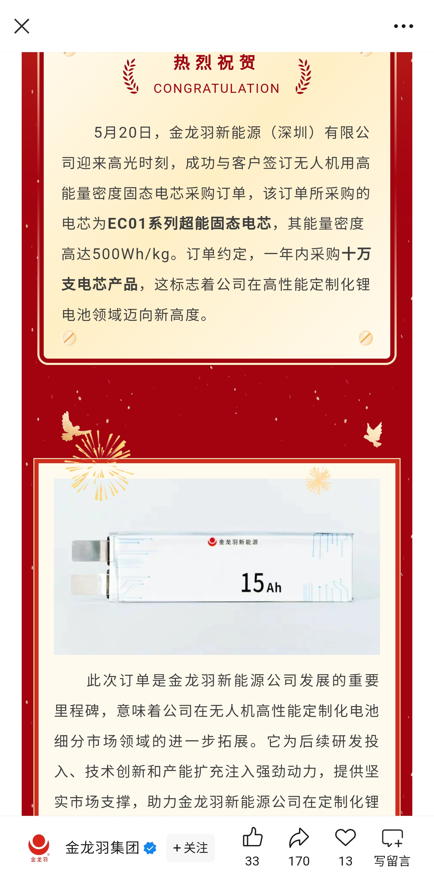 金龙羽这个不是小作文,官方公众号中午发的喜报,开盘就拉涨停了