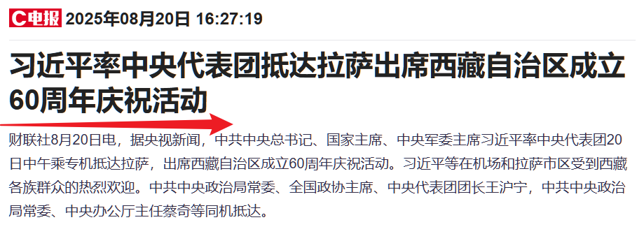 最后一条昨天关注西藏60周年预期,今天就迎来了顶级人物!~