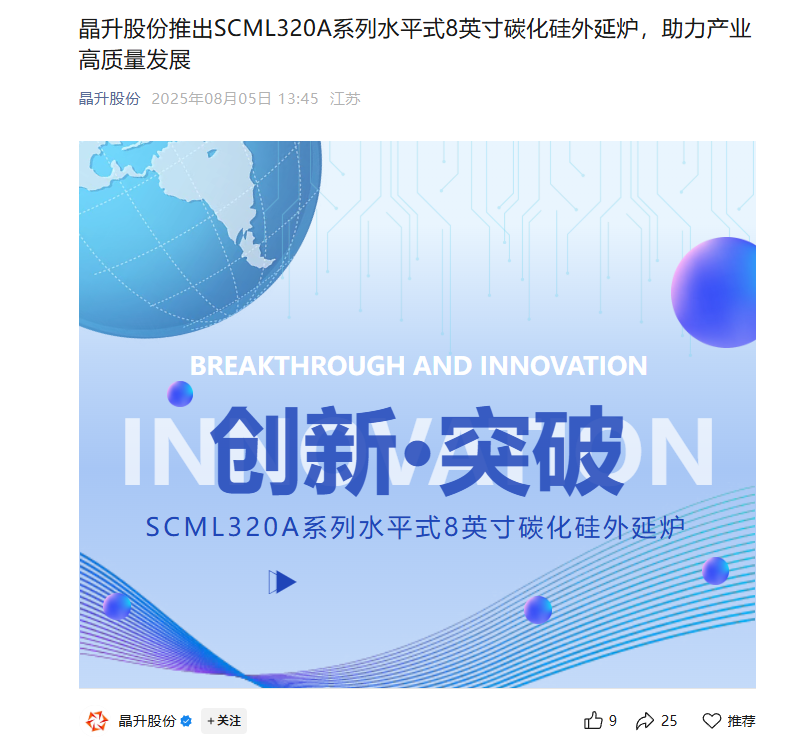 晶升股份推出SCML320A系列水平式8英寸碳化硅外延炉,助力产业高质量发展