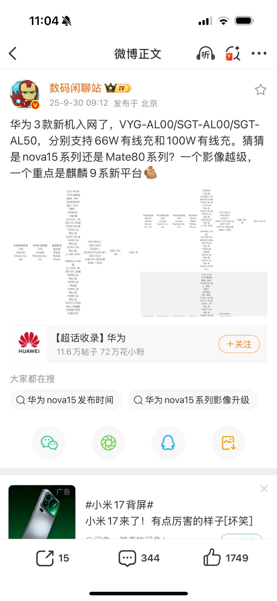 假期最强埋伏预期,华为新机已开始入网,80还会远吗