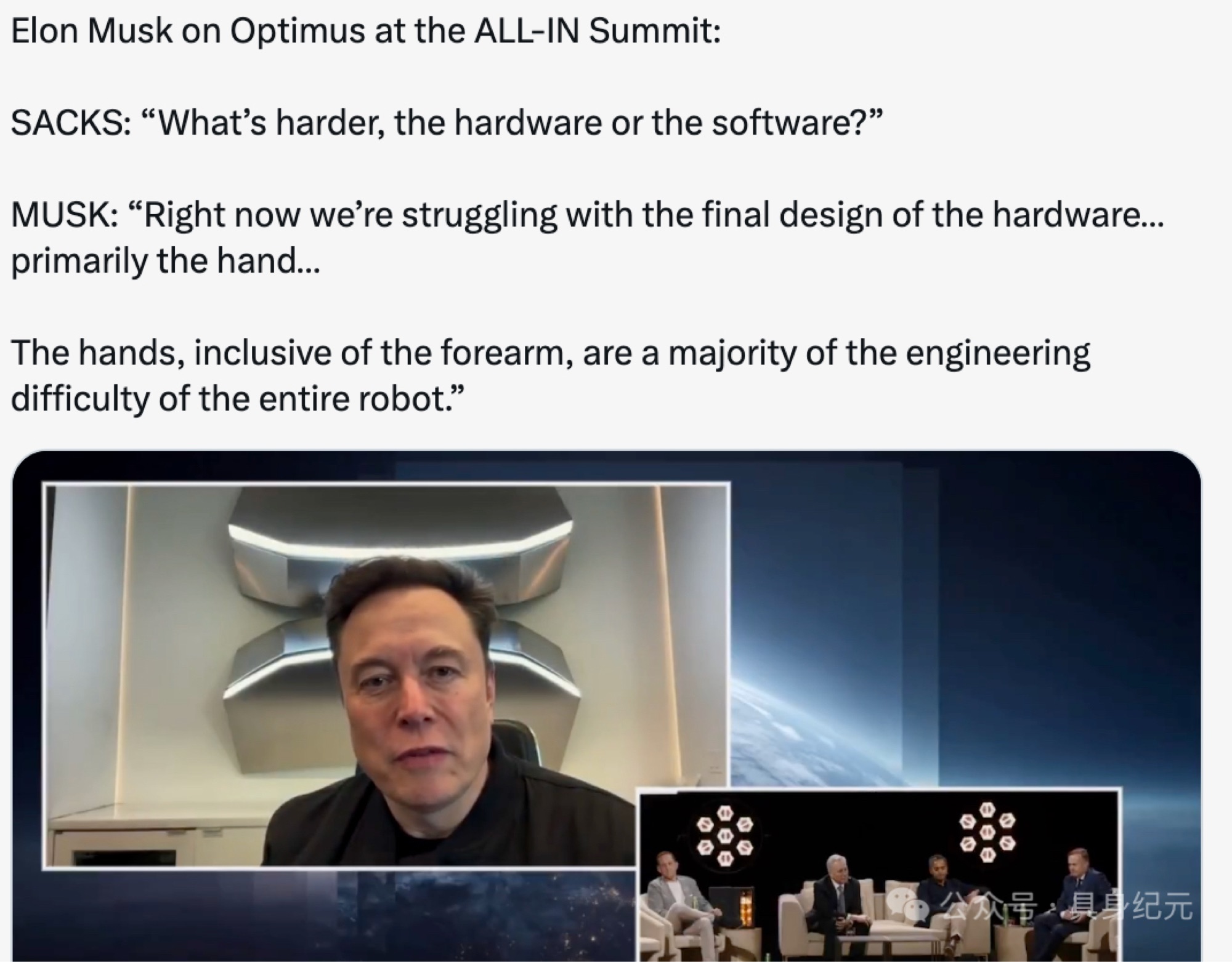 马斯克在最近的一次采访中这么表述:
