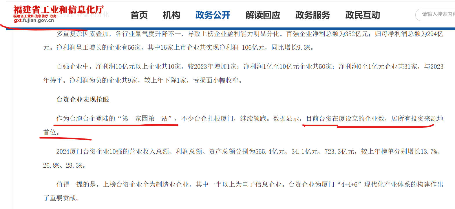作为台胞台企登陆的“第一家园第一站”,不少台企扎根厦门,继续领跑。数据显示,目前台资在厦设立的企业数,居所有投资来源地首位。2024厦门台资企业10强的营业收入总额、利润总额、资产总额分别为555.4亿元、34.1亿元、723.3亿元,较上年榜单分别增长13.7%、26.8%、28.3%。值得一提的是,上榜台资企业全为制造业企业,其中一半以上为电子信息企业。台资企业为厦门“4+4+6”现代化产业体系的构建作出了重要贡献。--以上数据来源于福建省工业和信息化厅
