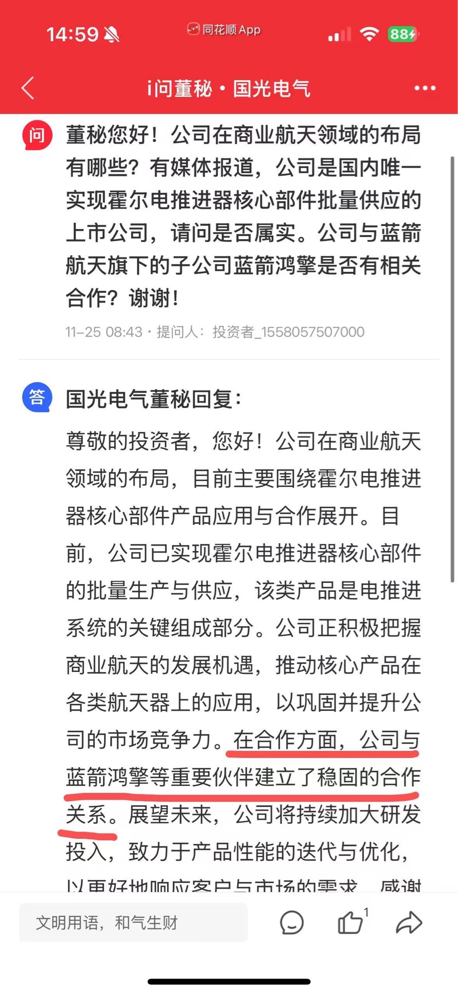 国光电气董秘回复: