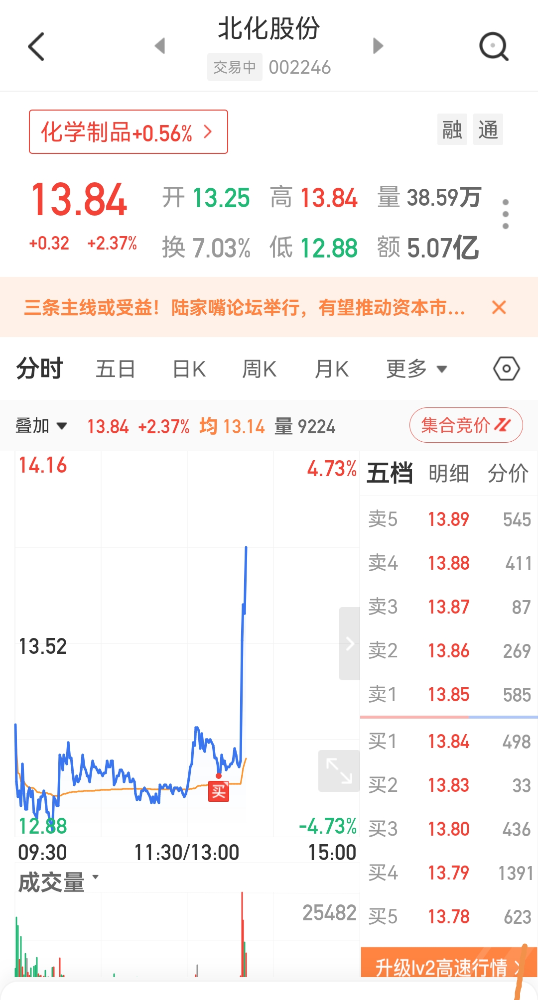 北化股份早上出了,又接回来,哎