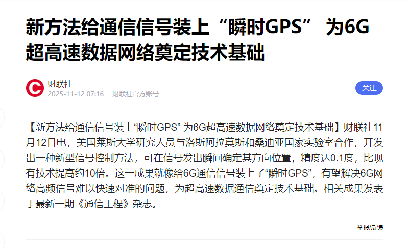 新方法给通信信号装上“瞬时GPS” 为6G超高速数据网络奠定技术基础