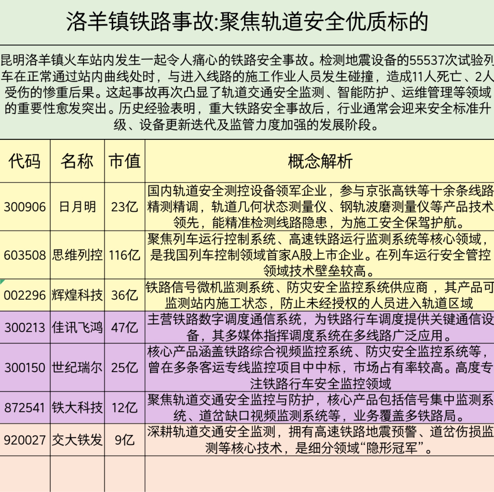 突发: 洛羊镇铁路事故,聚焦轨道安全优质标的