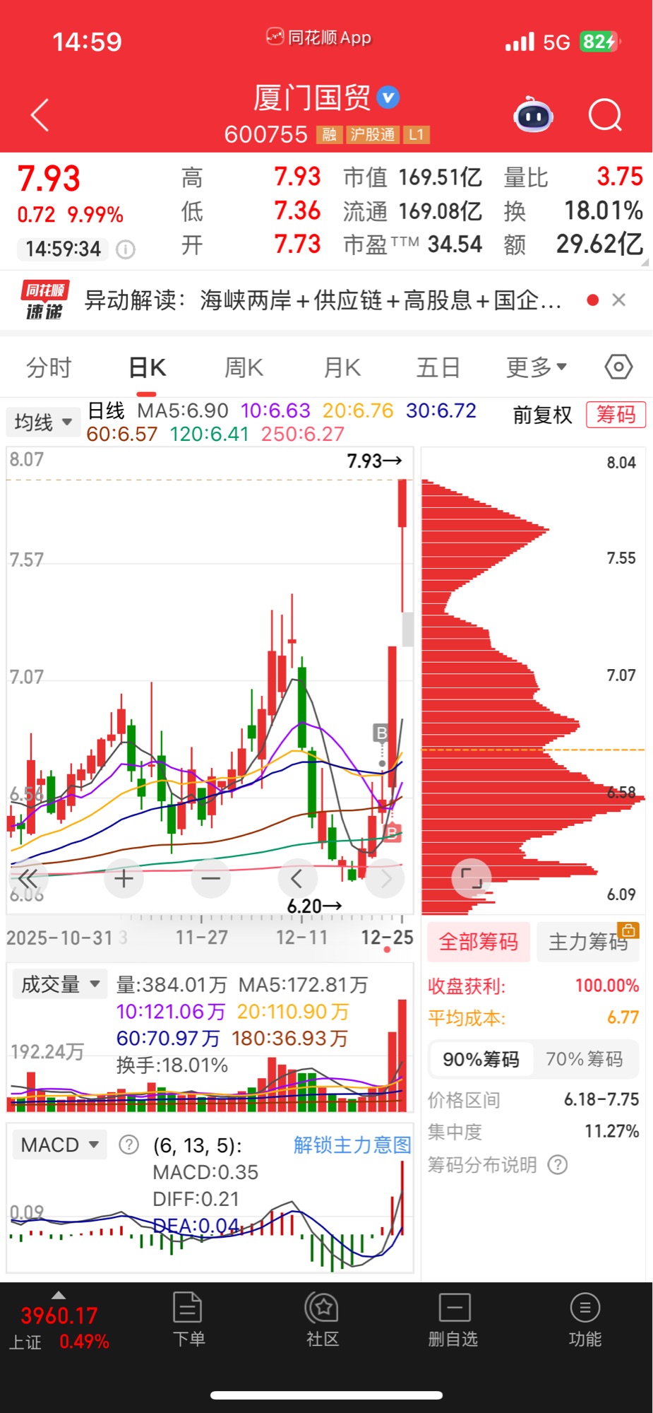 光靠馆长,走不远。但是叠加海南+福建+两岸+人民币升值预期,明天能秒板,就有希望替代平潭,成为福建的新龙。说实话,平潭发展市值都250+亿了,厦门国贸补涨到300是有希望的。