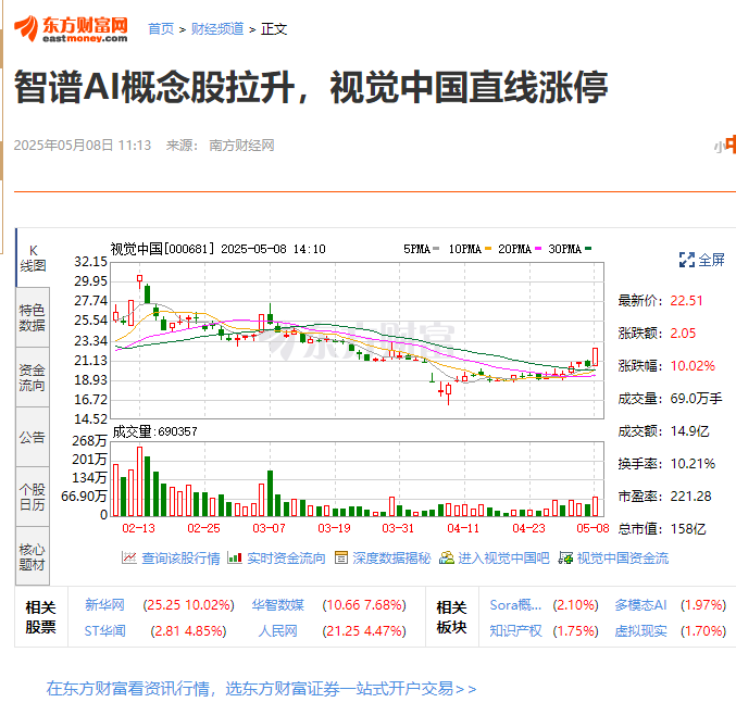 智谱AI概念股拉升,视觉中国直线涨停
