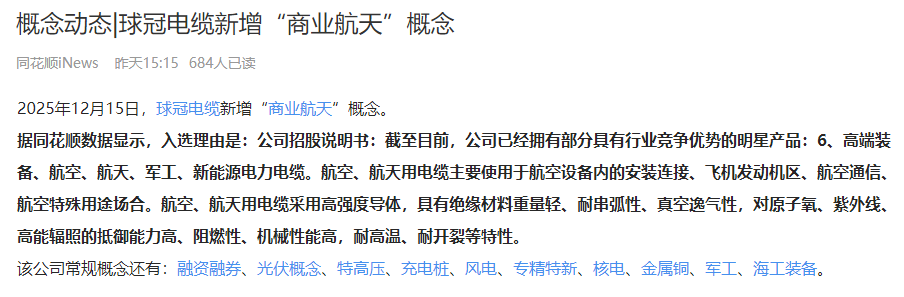 球冠电缆 北交所新增的商业航天线缆!