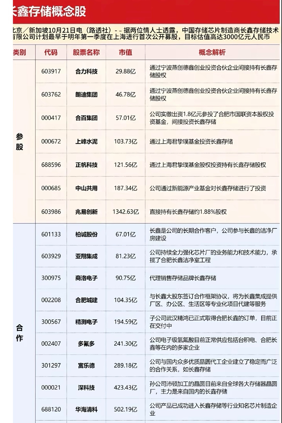 长鑫存储参股及合作公司
