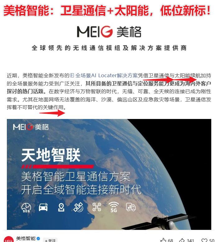 美格智能:卫星通信+太阳能,低位新标!符合热点