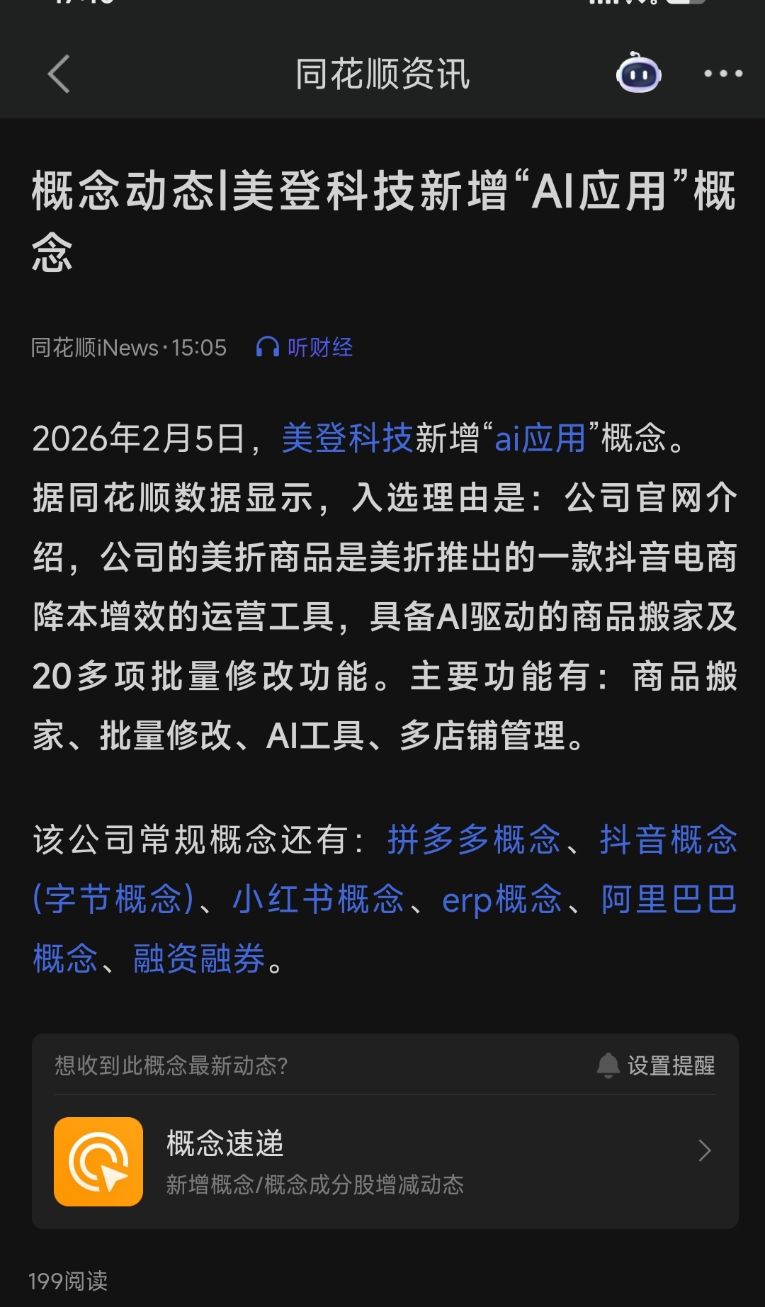 收盘新增ai应用概念