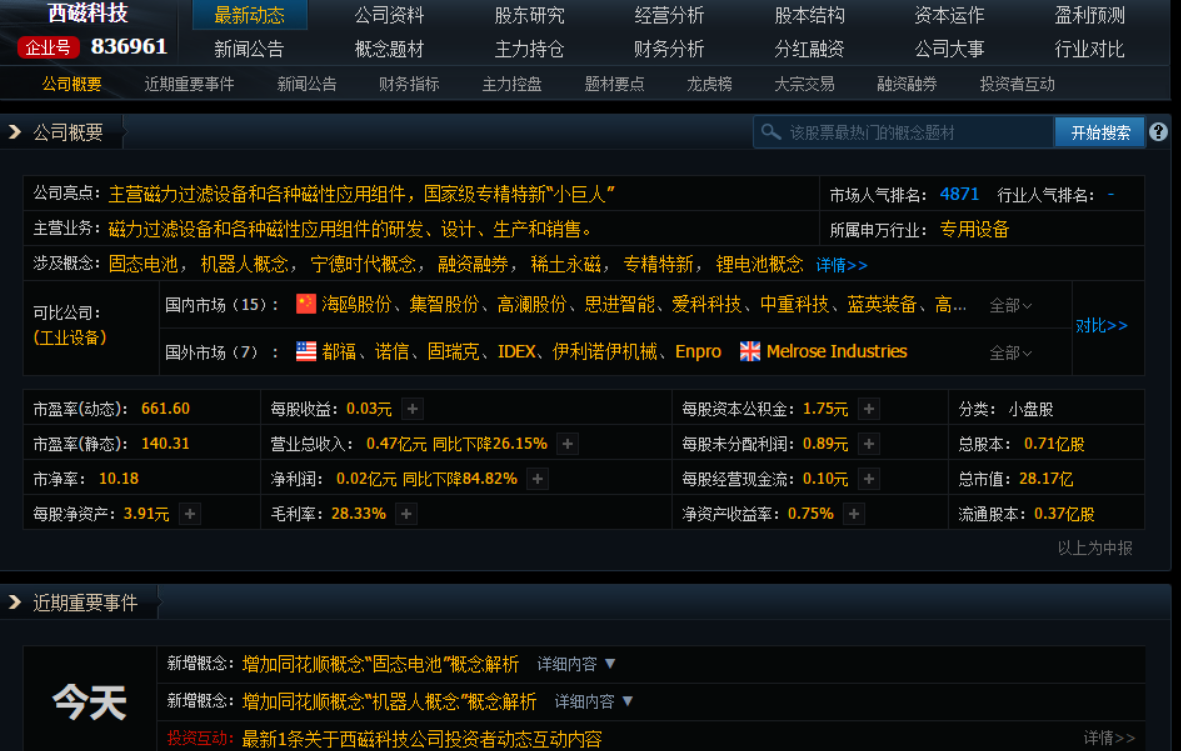 西磁科技836961唯一机器人+董秘刚回复的固态电池北交所+产品出海