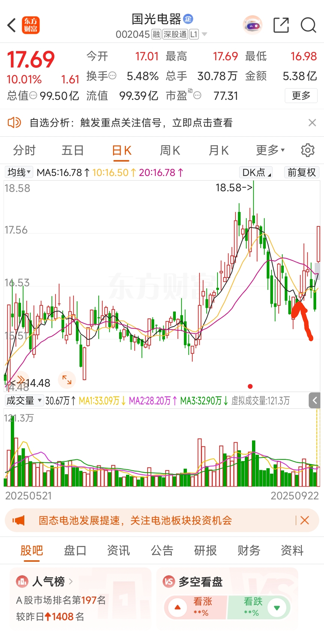 大伙好,上次低位挖掘的国光电器,已经大单封板!涨了不追,关注下一个低位主线方向:盘龙药业+药石科技!周末重磅利好,首提医药反内卷,首选中药+创新药管线盘龙、创新药铲子股+AI制药核心龙头的药石!