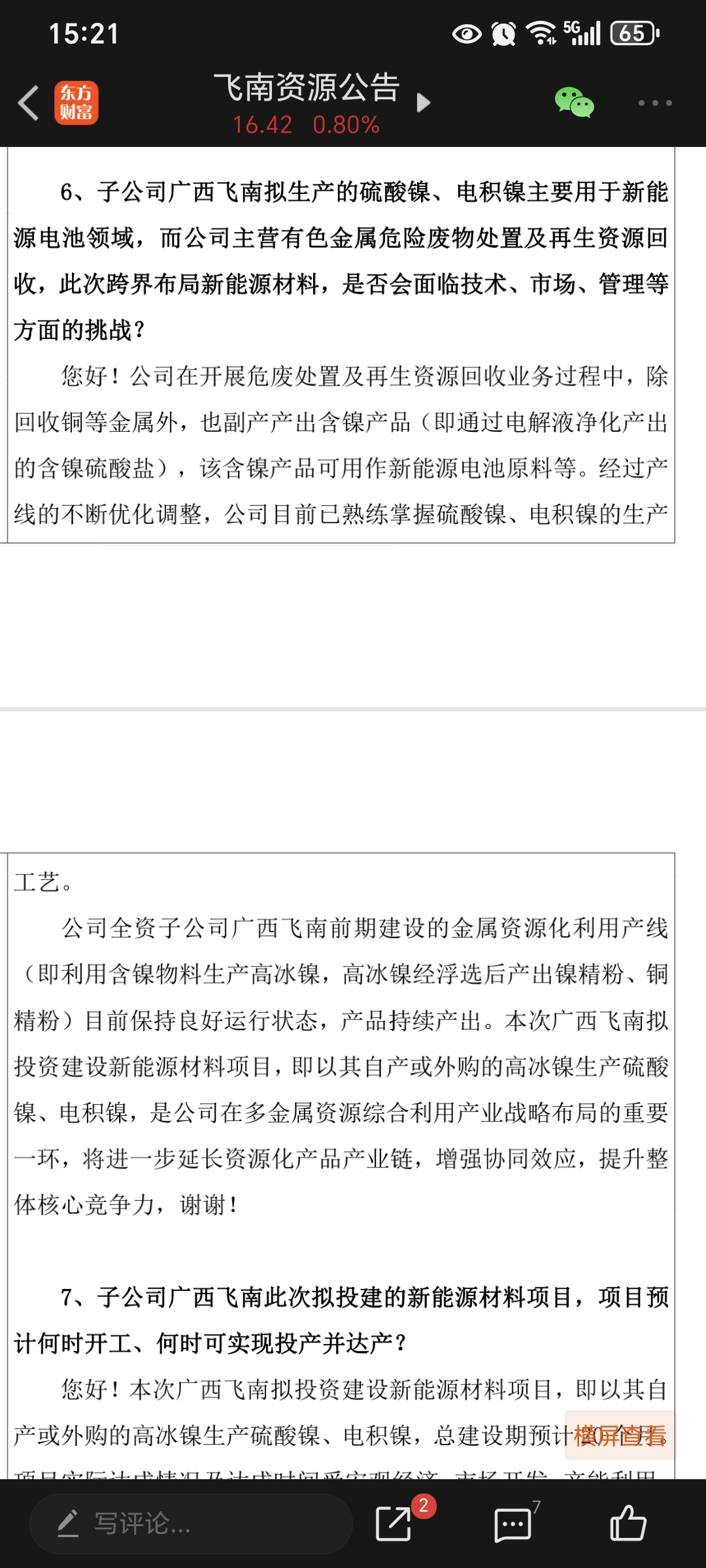 值得一提的是,2023年以前,飞南资源生产基地以广东飞南、江西飞南、江西兴南为主,主要处置含铜危废,资源化产品以电解铜为主。2023年至今,随着江西巴顿和广西飞南项目的投产,公司已实现铜、镍、锌、锡、金、银、钯等多金属深度资源化,新增产出镍精粉、锌锭、焊锡锭、金锭、银锭、钯粉等资源化产品,构建多金属资源综合回收利用的产业闭环。今年上半年,飞南资源多类金属产销率维持高位,其中铜产量为5.8万吨,产销率为99.06%;金、银产量分别为57.64万克、3.51万千克,产销率分别为99.54%、110.16%。新建项目方面,赣州飞南40万吨/年工业废盐资源化利用项目已取得环评、能评、安评等批复,目前在陆续开展工作;肇庆基地废弃电器电子产品和报废汽车拆解项目正在办理相关手续。新建项目方面,赣州飞南40万吨/年工业废盐资源化利用项目已取得环评、能评、安评等批复,目前在陆续开展工作;肇庆基地废弃电器电子产品和报废汽车拆解项目正在办理相关手续。。
