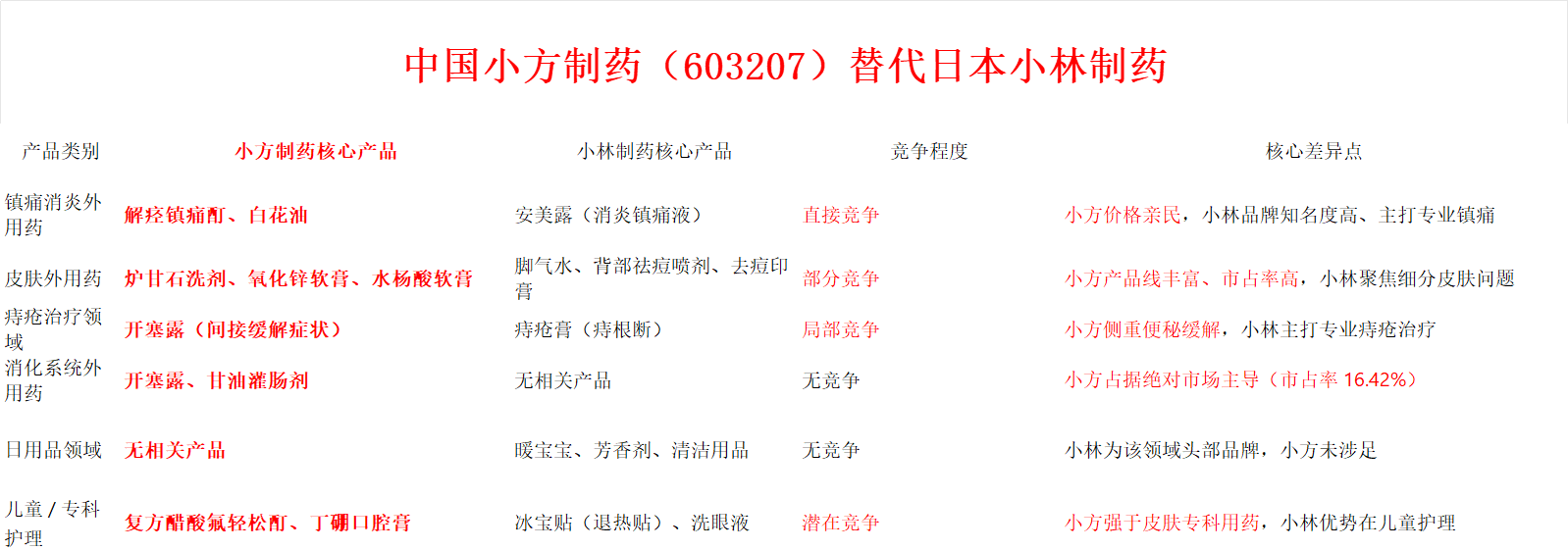 小方制药替代日本小林制药