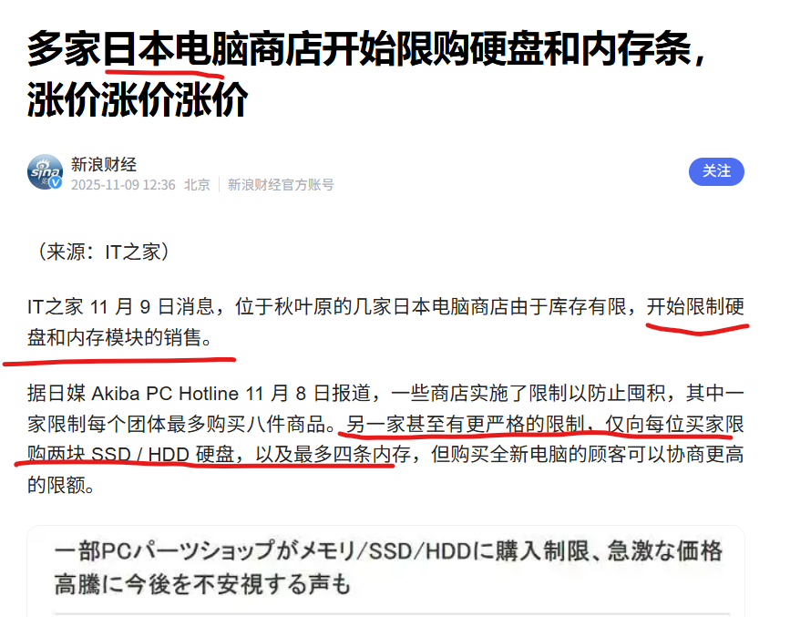 刚发布一周的新品就在那悄咪咪的涨价,而且这次涨价应该还是全球性的,小日子的那边的一些经销商都开始严格限制一次购买的硬盘和内存数量了