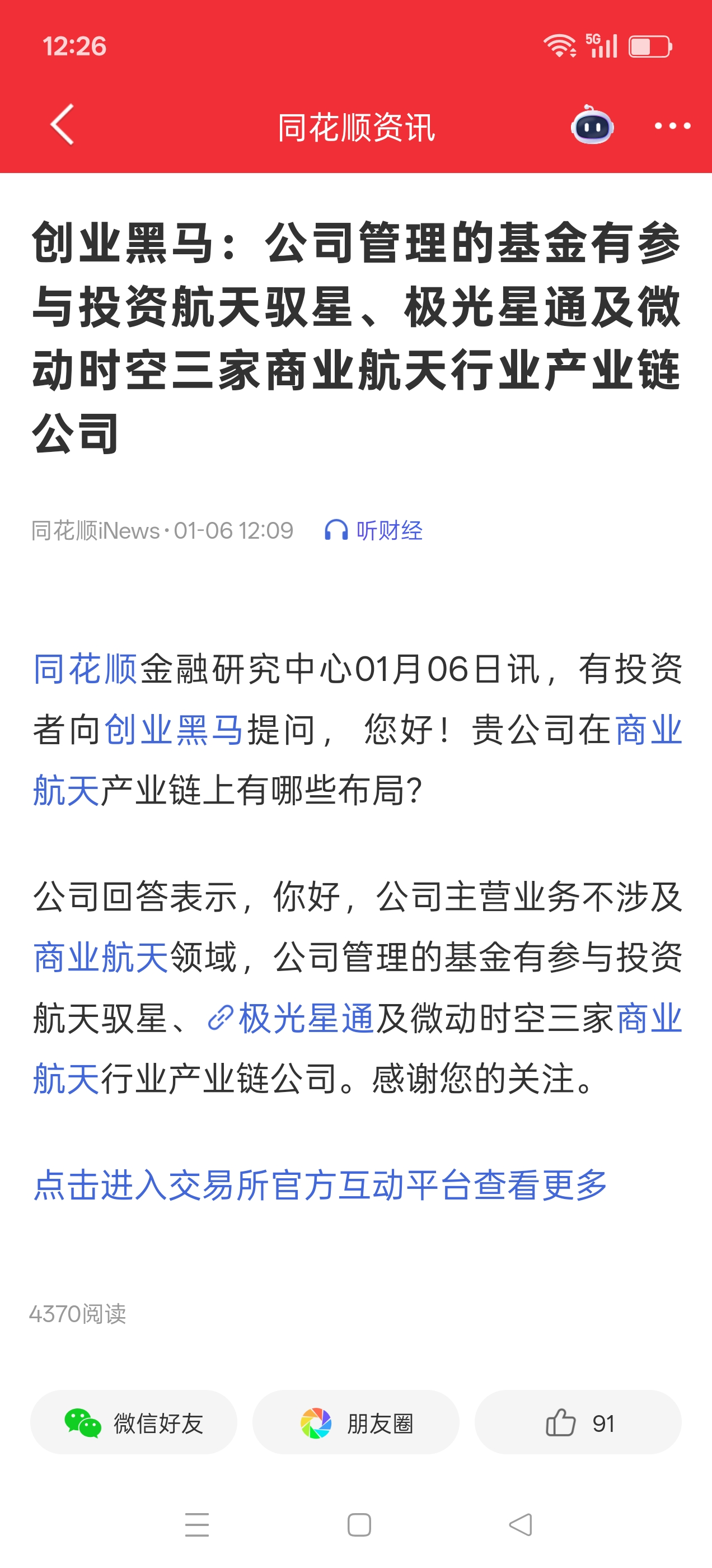 创业黑马已经投资了三家核心商业航天公司,还是正宗智谱合作概念股,创业板的鲁信创投。