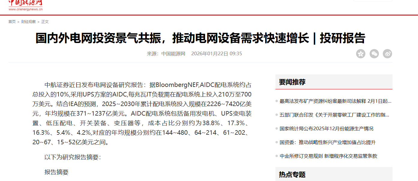 国内外电网投资景气共振,推动电网设备需求快速增长
