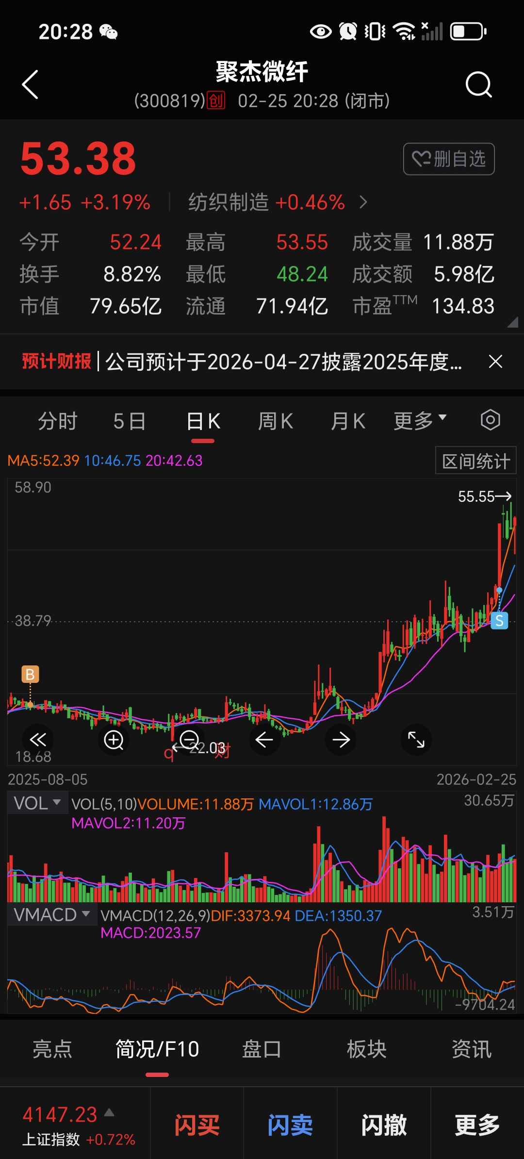 聚杰微纤 今天的走势,类似卓郎智能 昨天早上低开洗盘、昨天下午尾盘收中阳,今天直接直线上拉、早上封板!