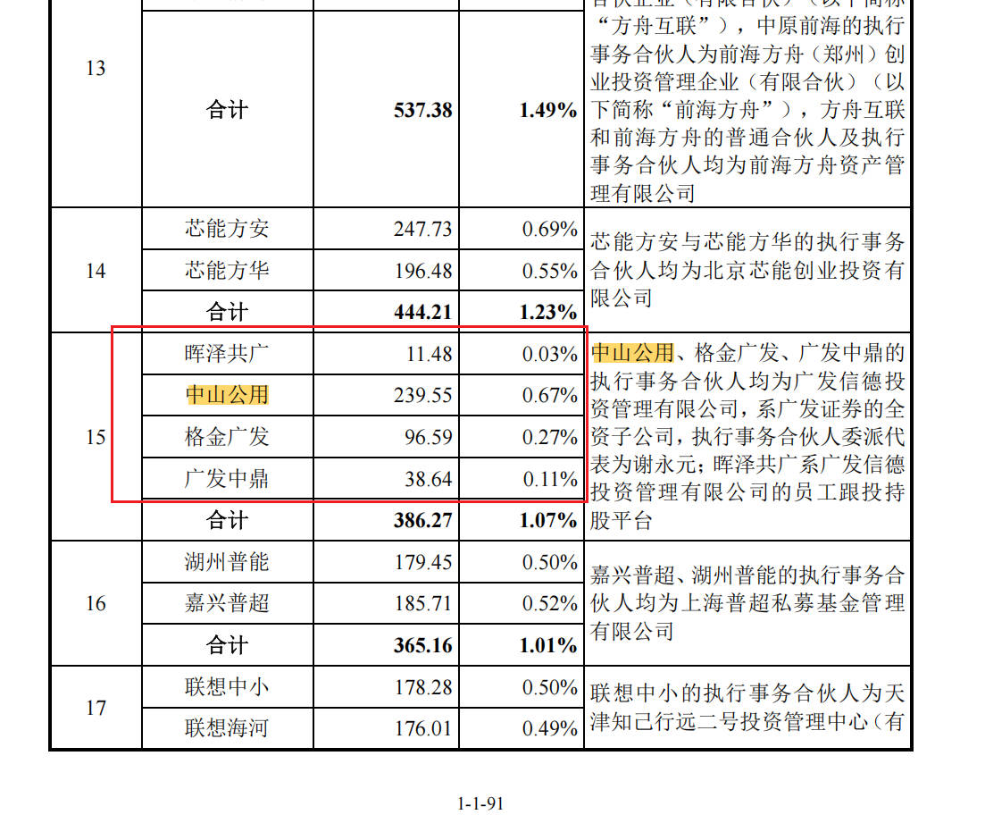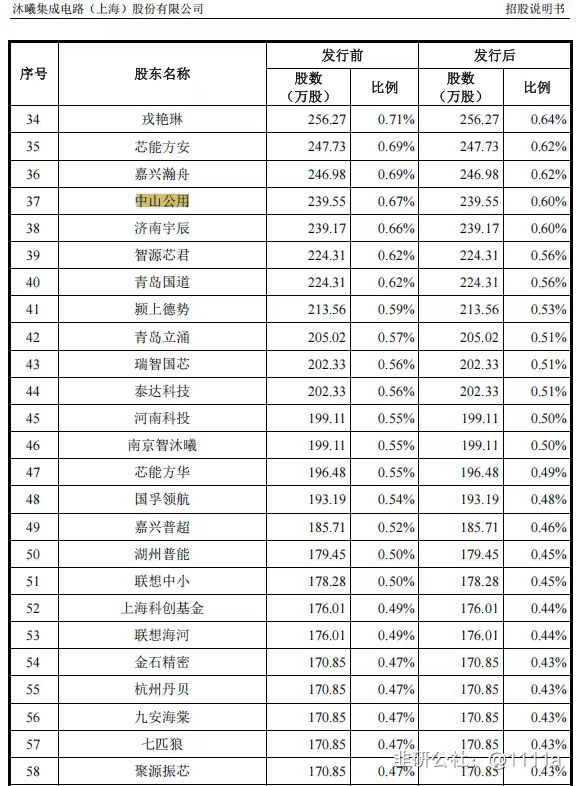 你写错了 招股说明书上明确写了中山公用持股0.67%