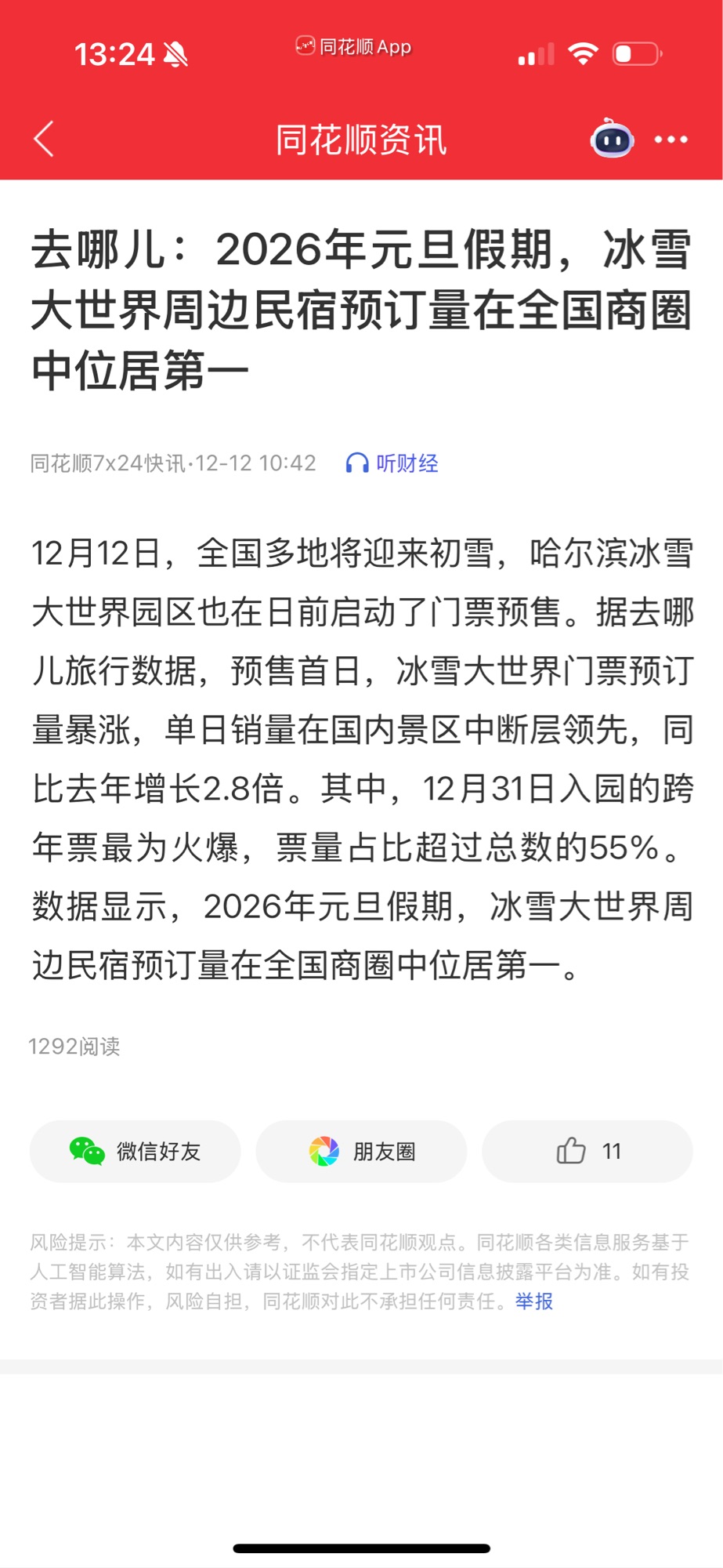 大消费之冰雪产业:元旦冰雪大世界周边民宿预订量全国第一