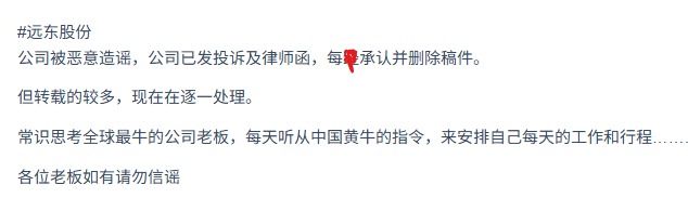 远东股份 公司被恶意造谣
