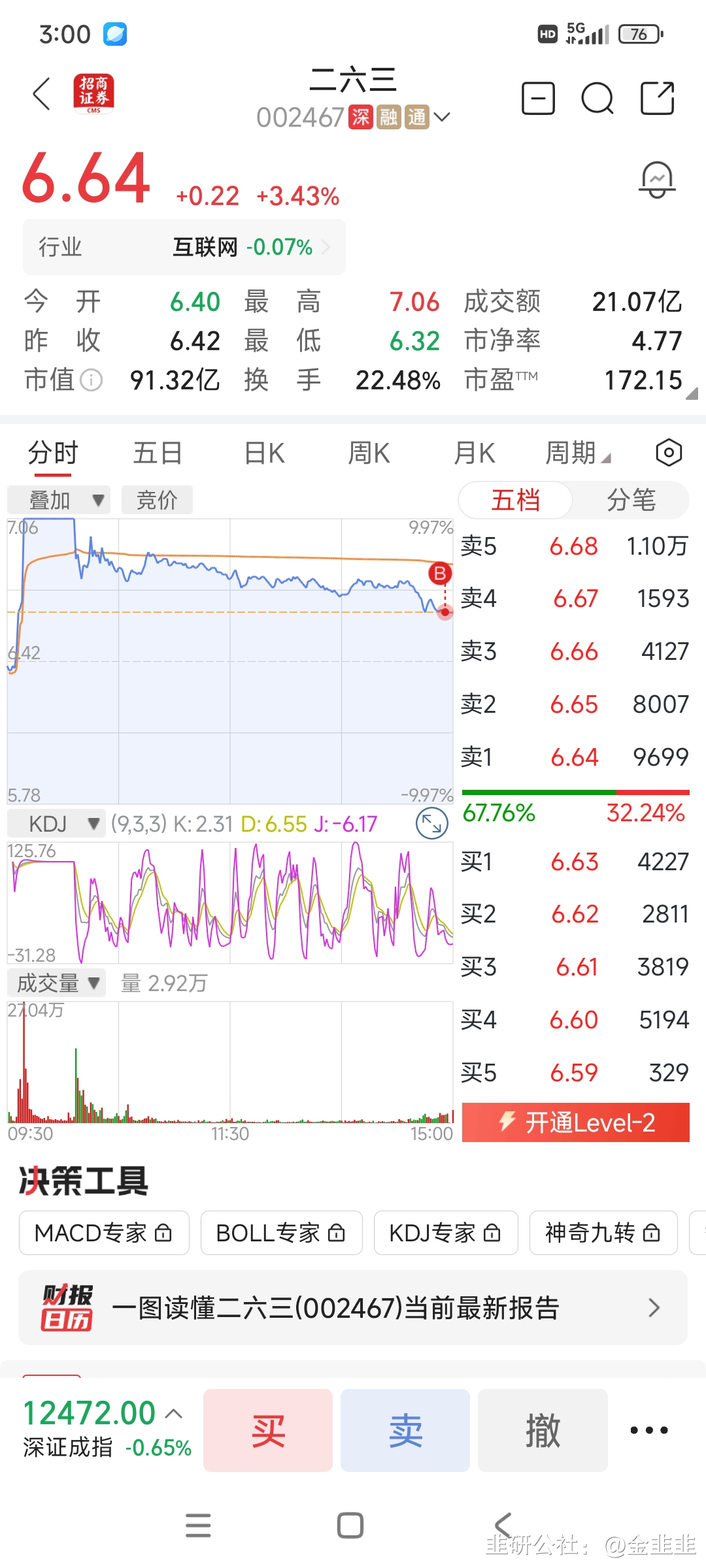 京山想做个t的结果不给机会,尾盘整了二六三,割肉了第一创业