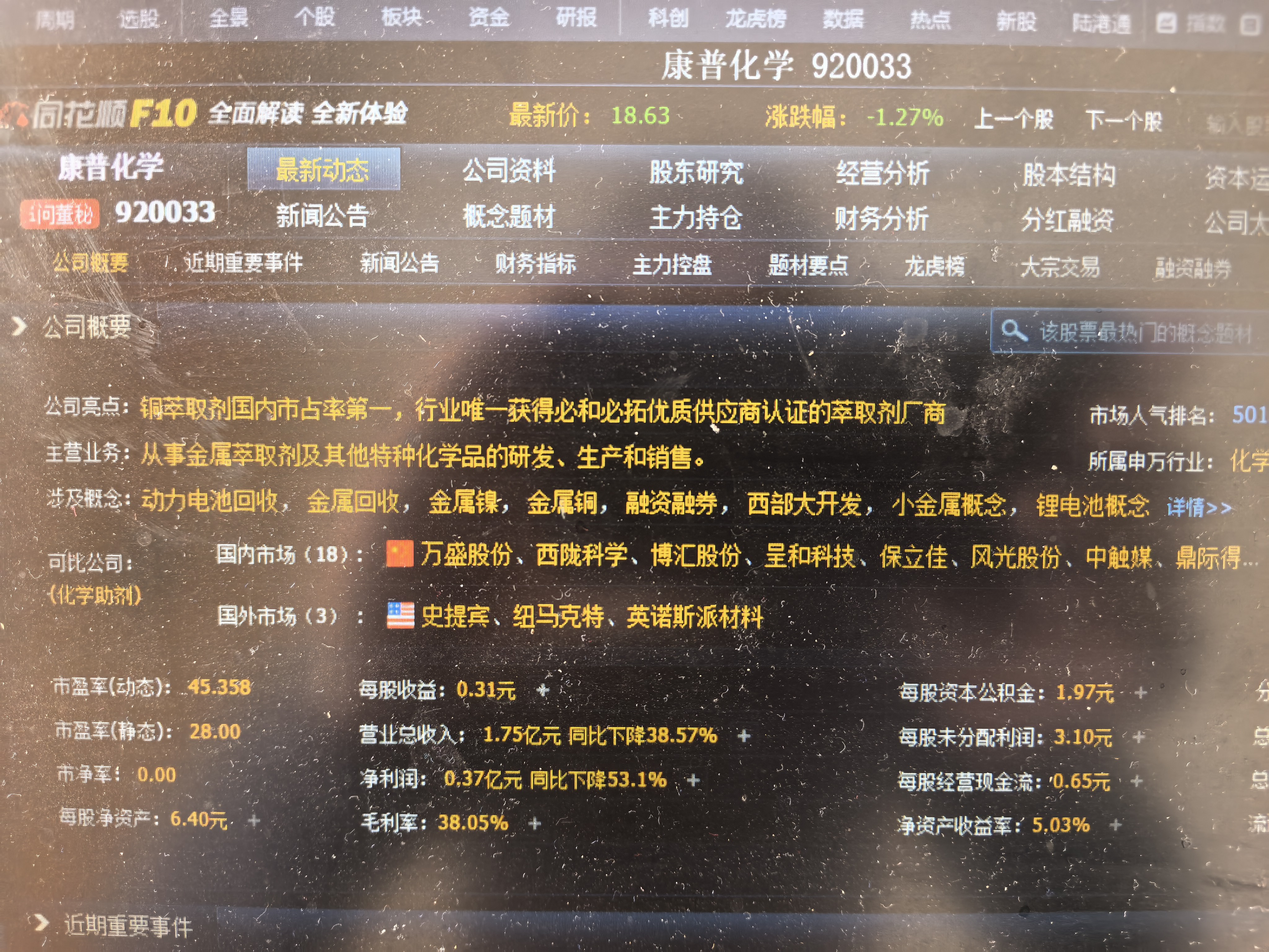 有色大涨,920033康普化学是金属萃取剂铲子股
