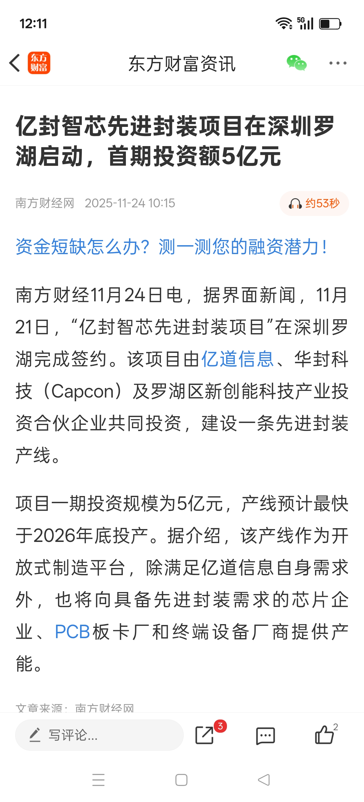亿道信息和深圳市政府共同五亿投资先进玻璃封装