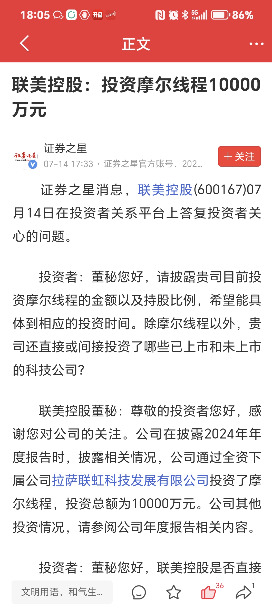 看错了,是投资的基金间接持有摩尔线程0.26%的股份,轻点喷各位。