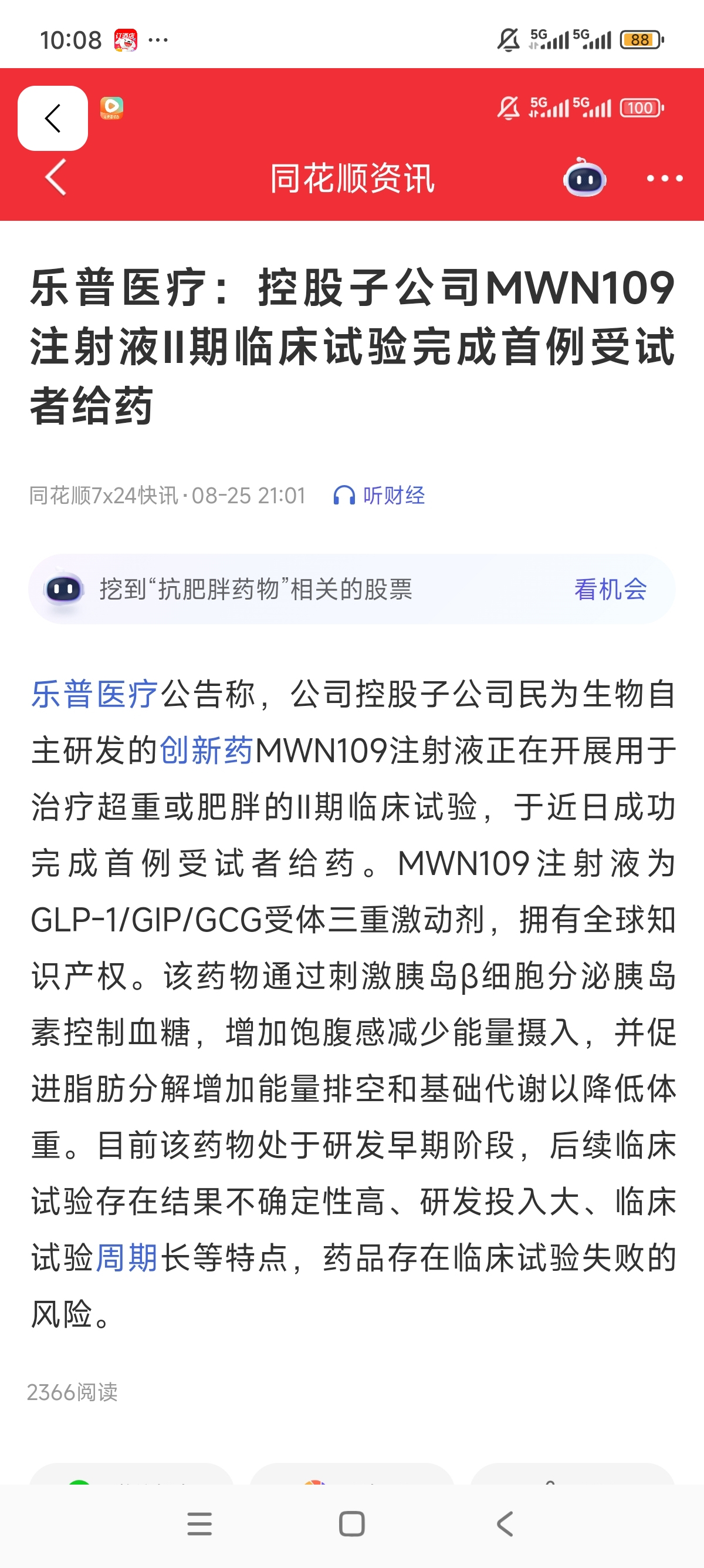 乐普医疗创新药预期差