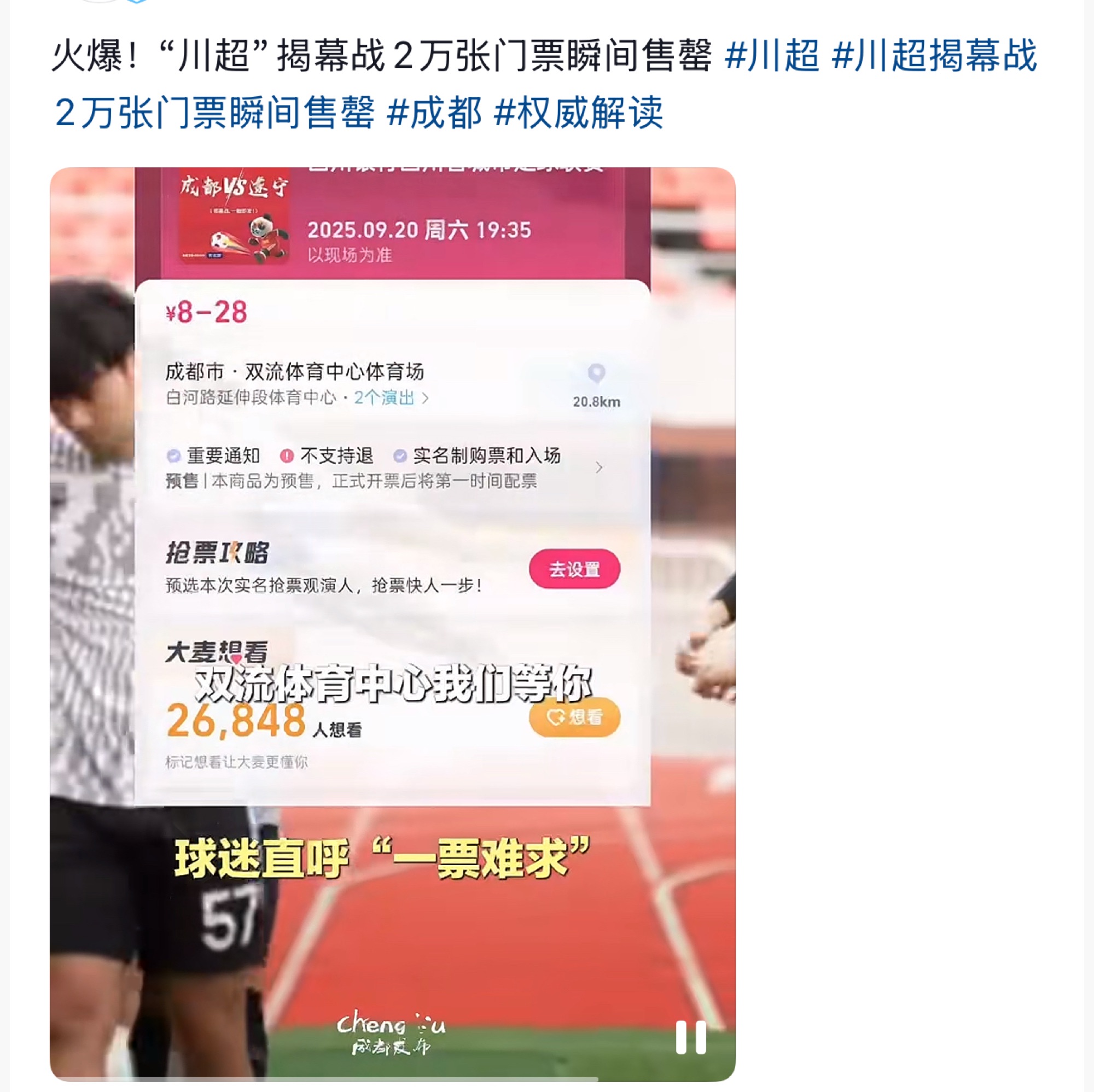 一秒售光!中国足球嘉年华!更火更热的“川超”来了!