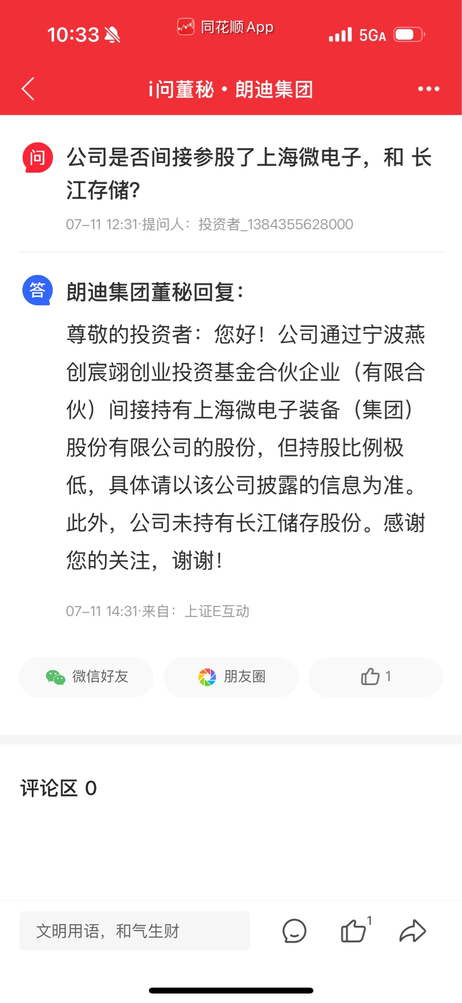 朗迪集团:实锤持股上海微电子和长鑫存储
