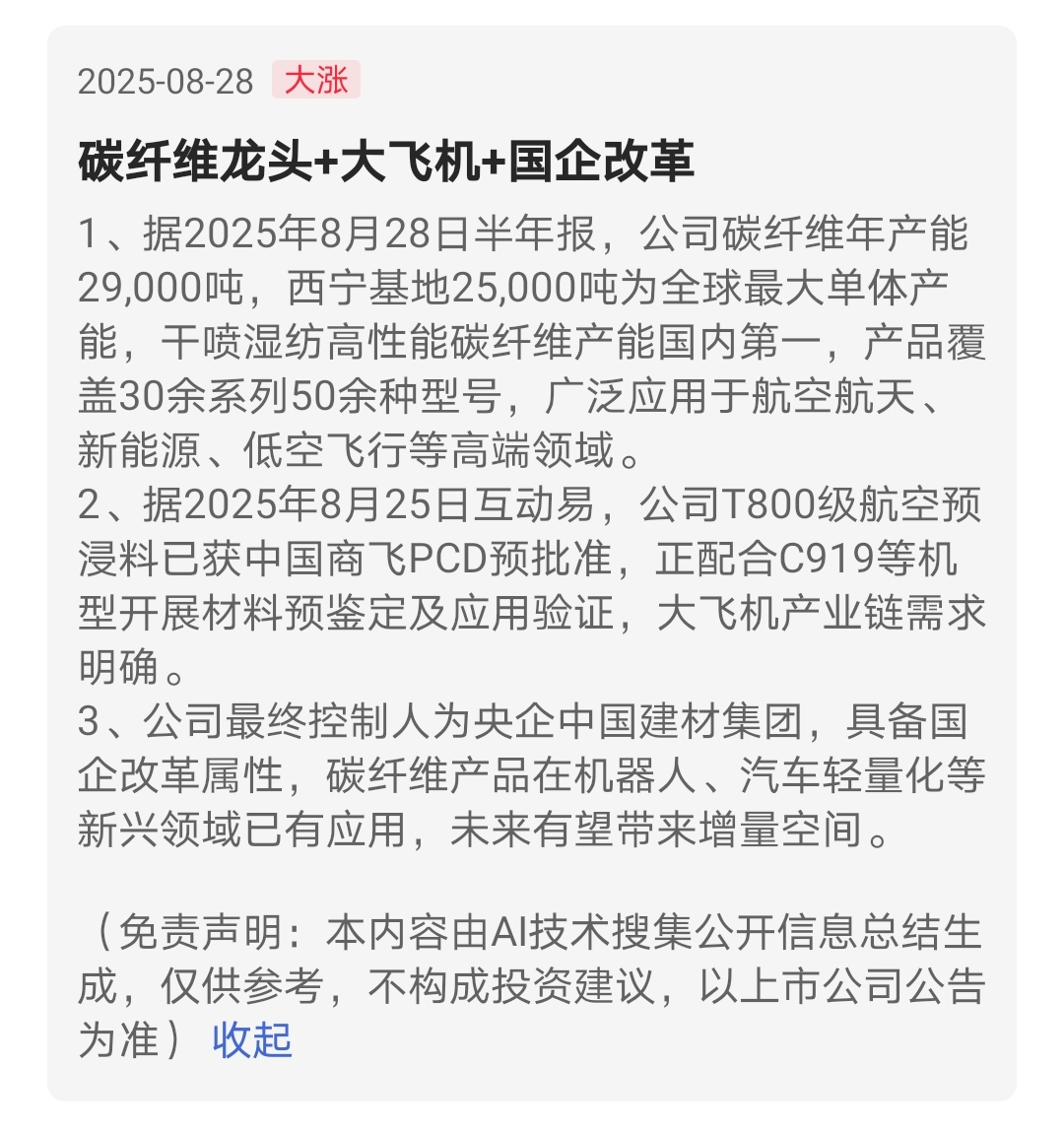 中复神鹰碳纤维,广泛应用于航空航天,低空飞行,是浮空艇材料首选
