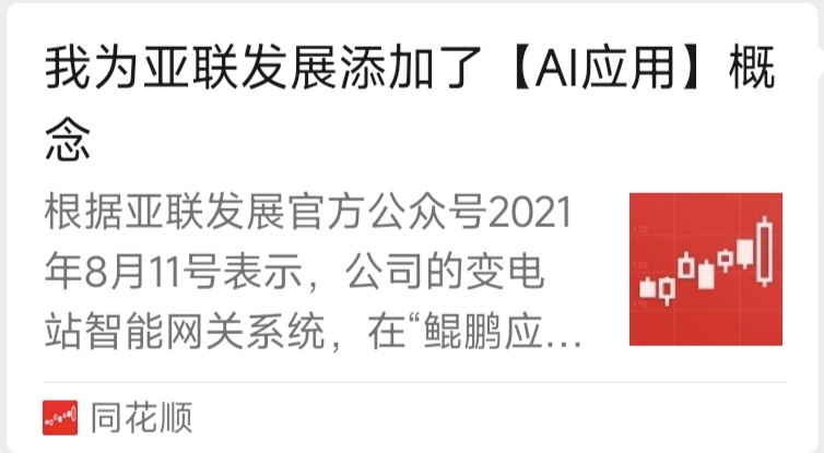 逻辑不错,从平潭发展到航天发展再到海南发展,AI应用应该是亚联发展。