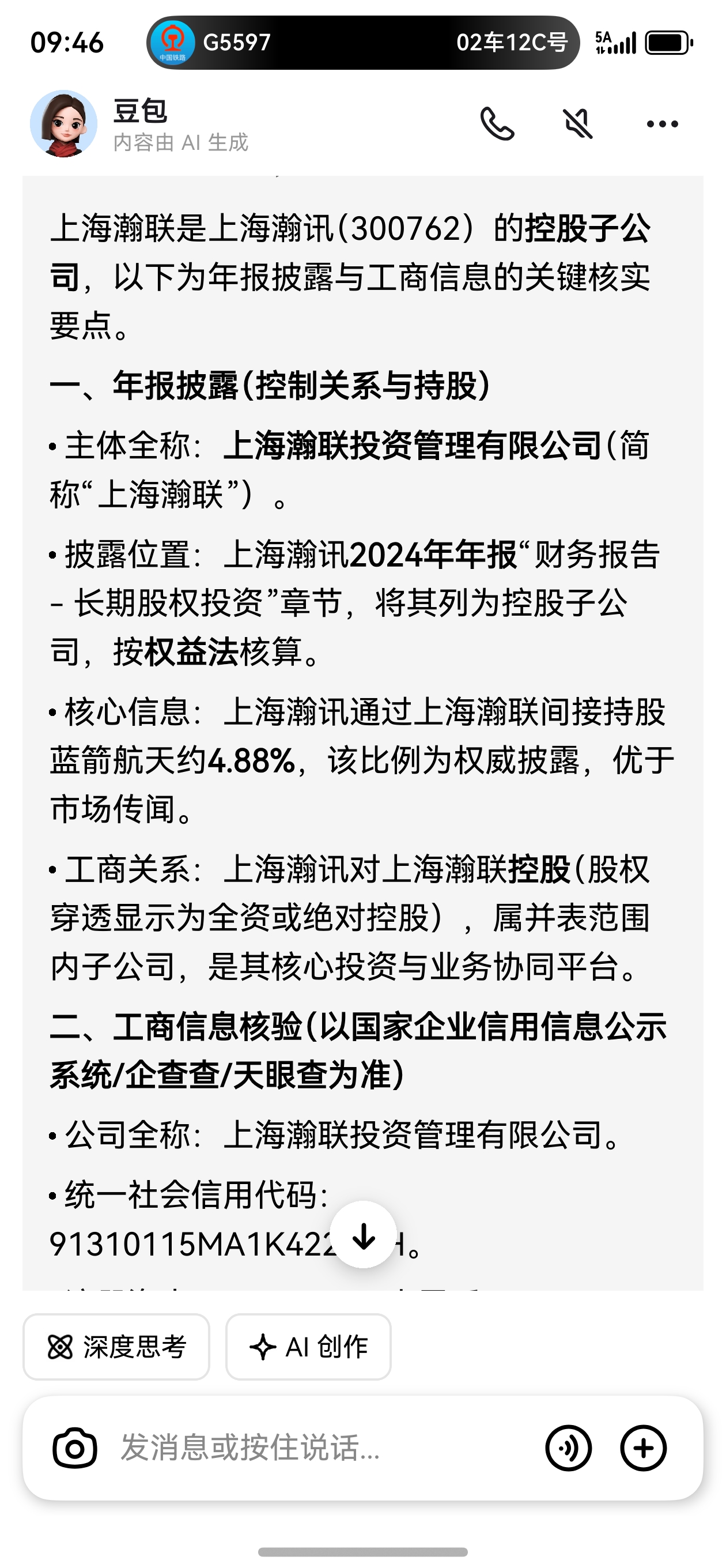 上海瀚讯通过子公司上海瀚联间接持股蓝箭航天4.88%股份