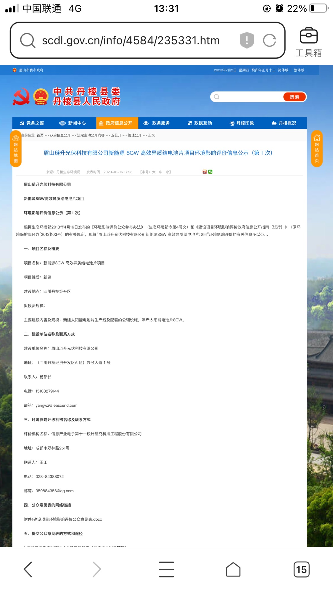 眉山琏升光伏科技有限公司新能源 8GW 高效异质结电池片项目环境影响评价信息公示(第Ⅰ次)-丹棱县人民政府