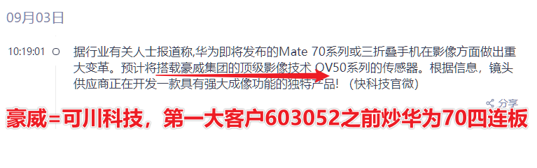 可川科技:华为加单备货国产CIS份额提升,豪威的1英寸主摄!!