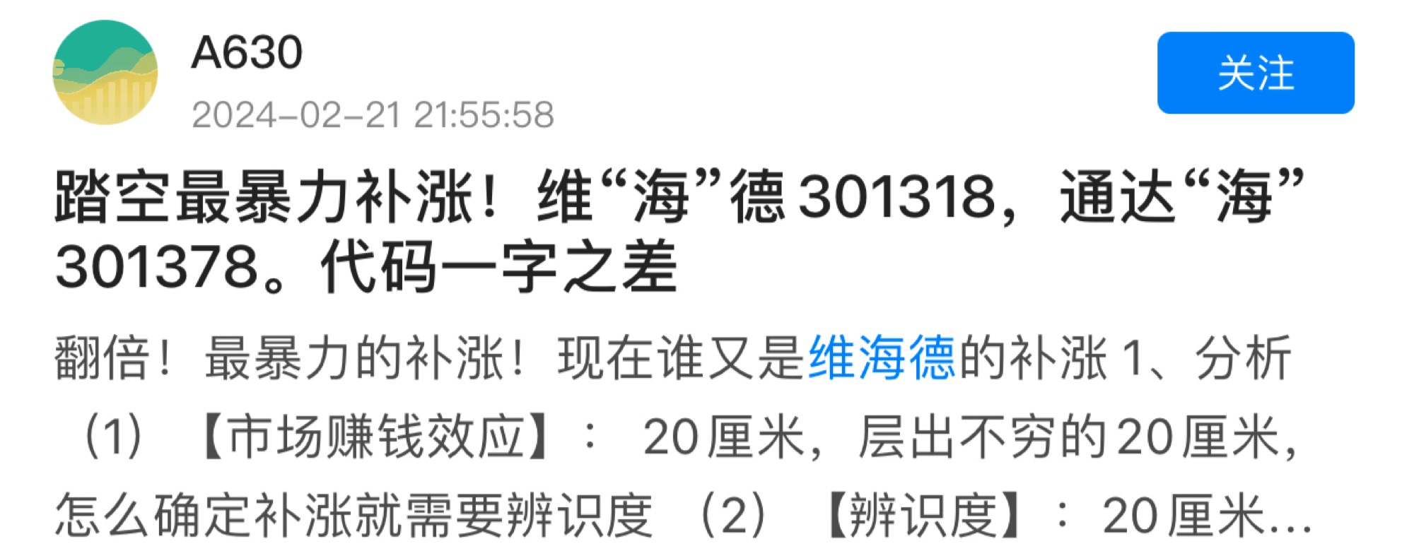 海峡创新补涨维海德