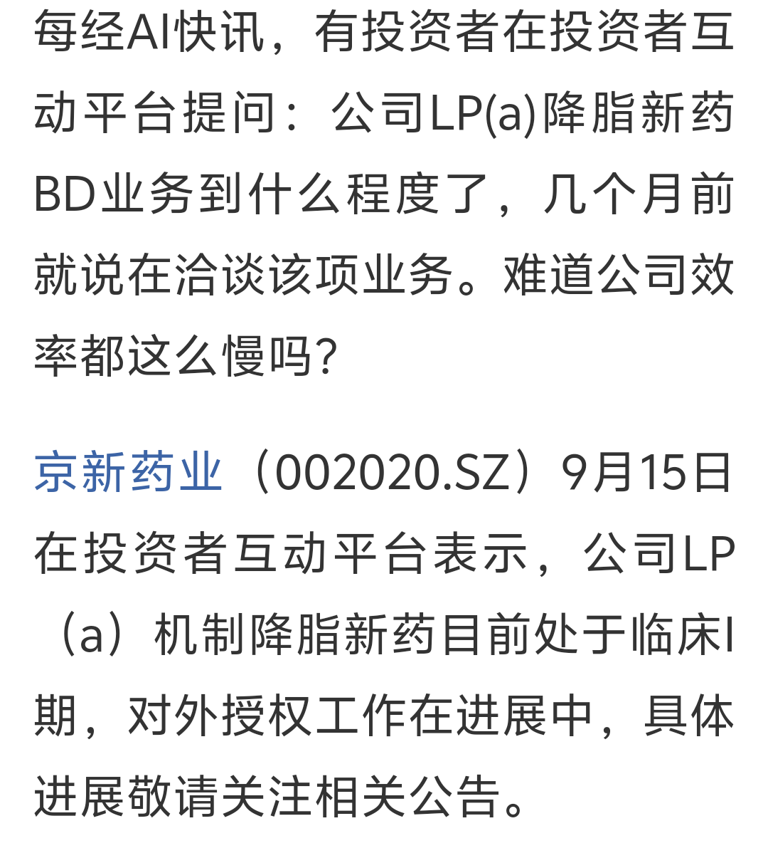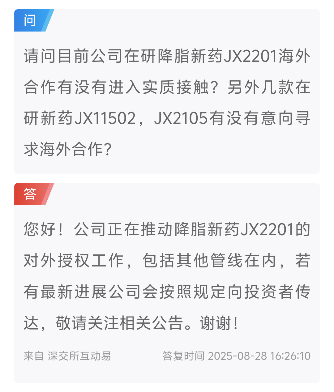 有几款不同管线的产品在洽谈BD