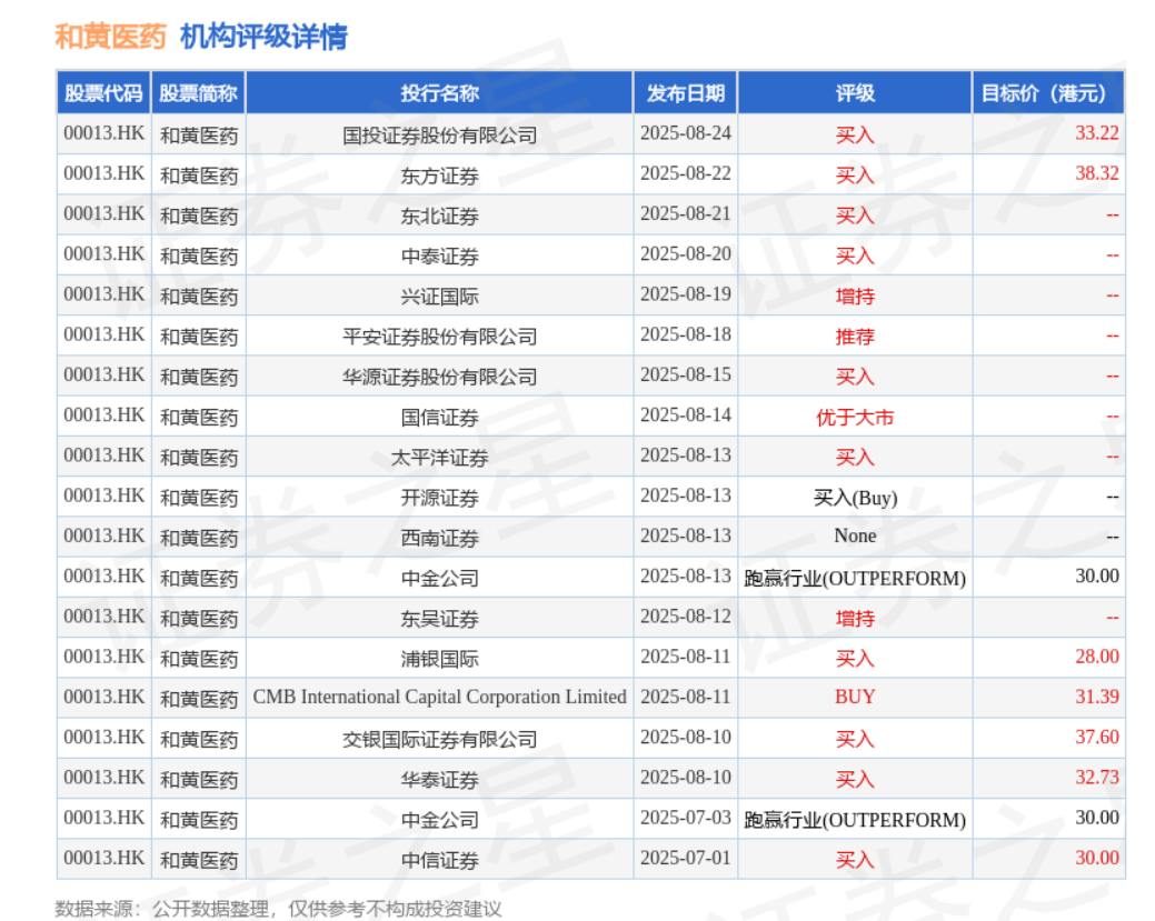 和黄医药 机构的评级权且一看了