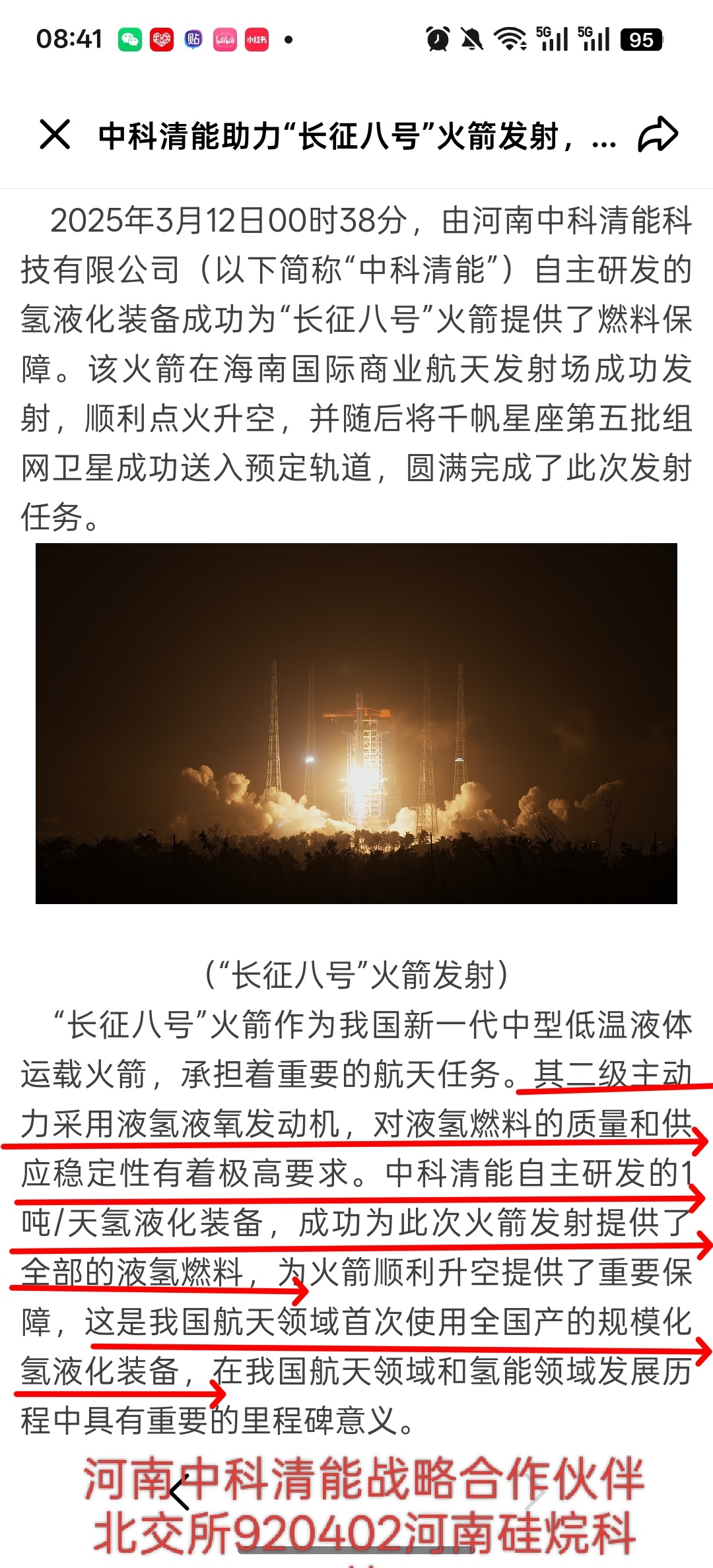 北交所920402硅烷科技战略合作中科清能助力长征八号商业航天火箭液氢发动机