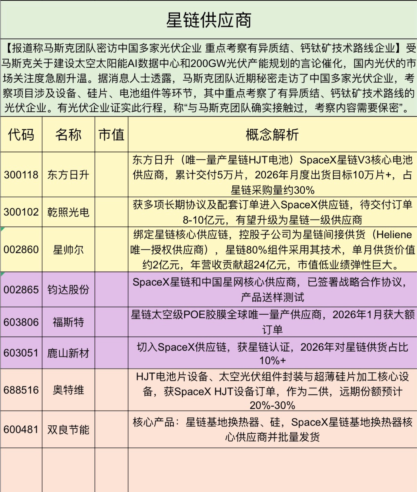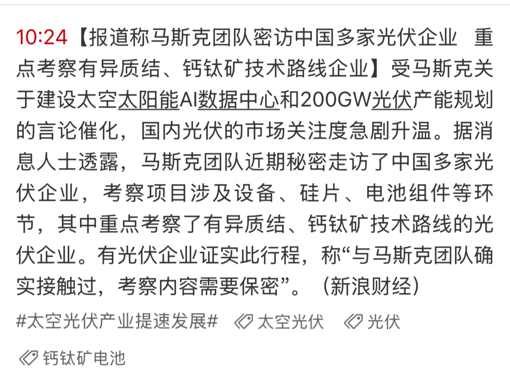 马斯克团队密访!星链+太空光伏核心受益标的全梳理