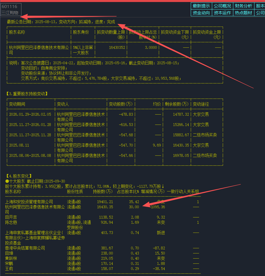 阿里巴巴持股三江30%, 持股最多,本身就是即时零售,最大利好
