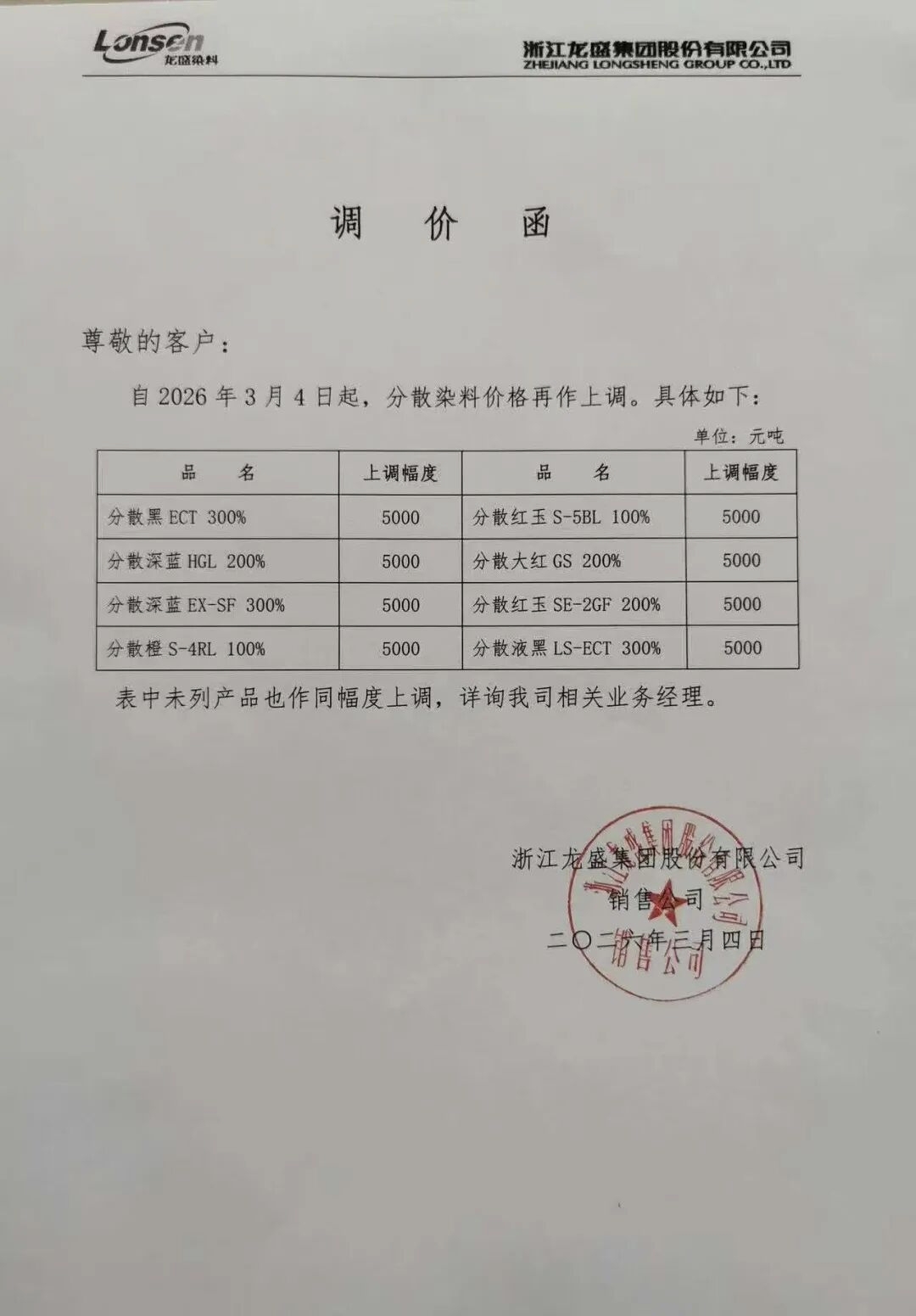 浙江龙盛又发新的涨价函了,染料涨价还在继续,持续看好二线厂商补涨