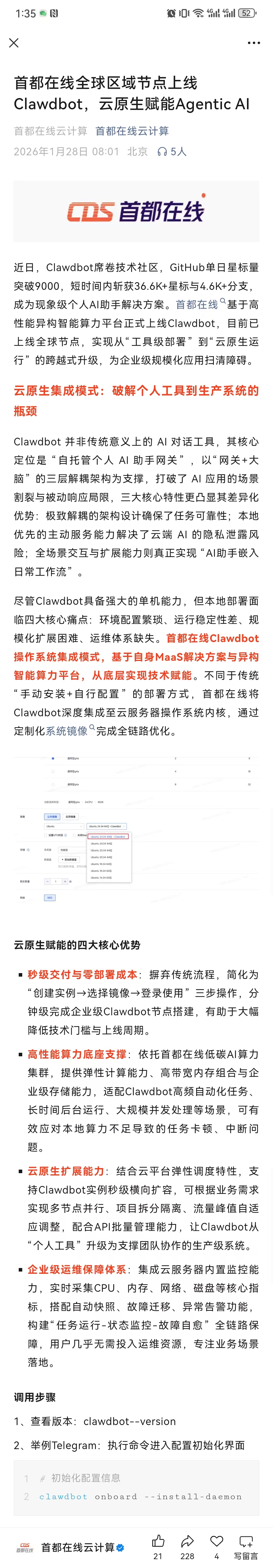 首都在线全球区域节点上线 OpenClaw/Clawdbot,云原生赋能AI
