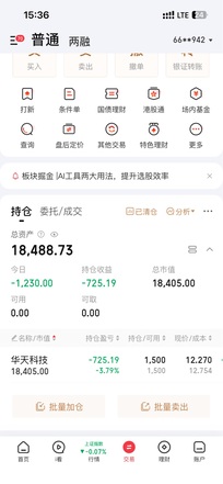 1⃣️今日继续持仓:全仓华天 2⃣️操作记录: 华天早上缩量低开,目前亏损3个点, 底部筹码还在里面,再拿一天再走, 短线分歧严重。 另外昨天说了安泰科技,早上另外一个账户20.65全仓进了,涨停下午炸板了,今天大资金分歧严重,好几个涨停炸开,估计其他票多数人都亏钱了 🔥总结: 连续交易10天,连阳8天,月收益6.57%